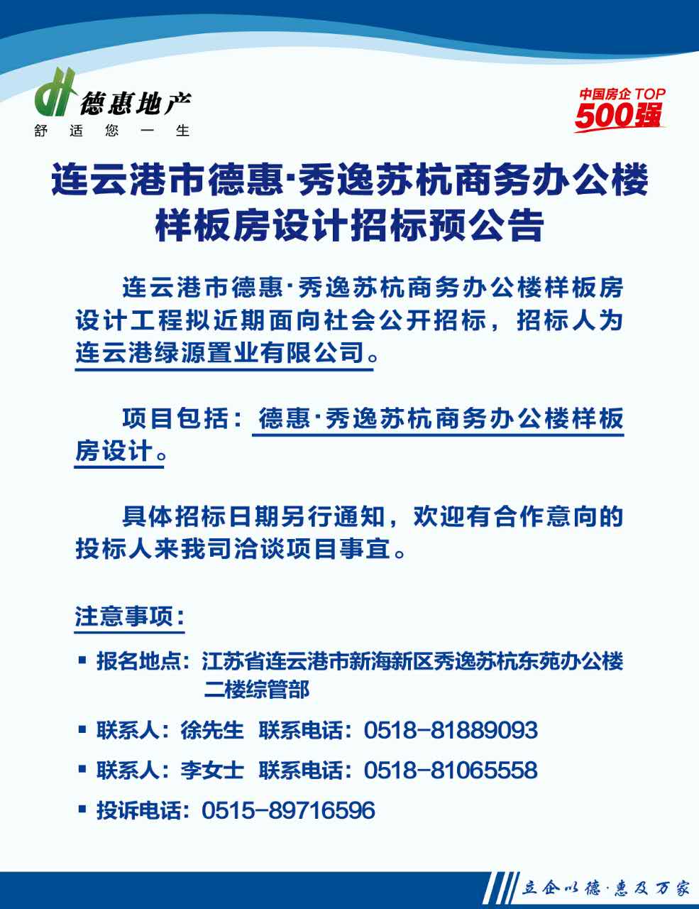 連云港德惠·秀逸蘇杭東苑樣板房設(shè)計招標(biāo)預(yù)公告
